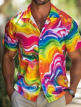 Homens Bloco de cor Gradiente Camisa Social camisa de verão camisa de botão Manga Curta Moda Casual Ao ar livre Férias Dia a Dia Verão Primavera Aberto para a Lateral Impressão 3D camisas de colarinho