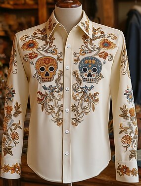 Homens Caveiras Estampa floral Finados Camisa Social camisa ocidental Camisa de caubói Manga Longa Vintage retrô Ao ar livre Férias Primavera Outono Aberto para a Lateral Impressão 3D Camisa tipo