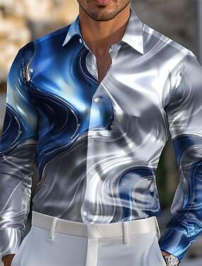 Homens Gradiente Ondas Mármore Camisa Social Blusa de cetim Saia Manga Longa Moda Casual Férias Dia a Dia Verão Primavera Outono Aberto para a Lateral Impressão 3D Camisas de botões Vermelho Azul