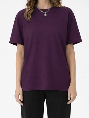 Mulheres Camiseta Vermelho Vinho Taro roxo Branco original Tecido Cor Sólida Manga Curta Casa Casual Básico Decote Redondo S