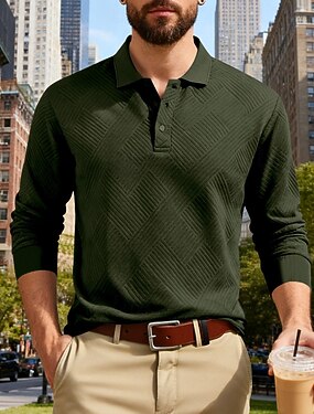 Homens Camisa de golfe Camisas Polos de Golfe Trabalho Casual Lapela Manga Longa Básico Moderno Tecido Jacquard Botões Primavera Outono Normal Preto Azul Marinha cáqui Verde Tropa Cinzento Escuro