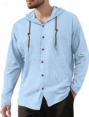 Homens Camisa Social Camisa de linho camisa de verão camisa de praia Tecido Férias Casual Preto Branco Azul Marinha cáqui Manga Longa Com Capuz Primavera Outono Roupa Com Cordão