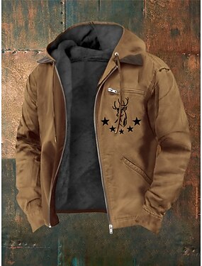 Homens Full Zip Hoodie Casaco de lã Moletom de lã Azul Marron Com Capuz Rena Estrelas Bolsos Imprimir Casual Diário Para Noite Poliéster Roupa de rua Retro Casual Outono & inverno Roupa Moletons