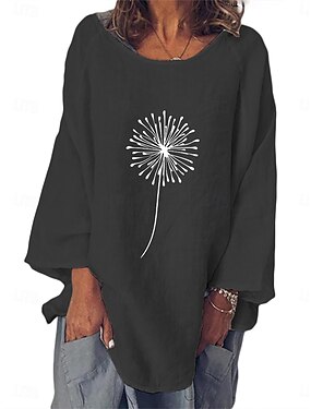 Mulheres Blusa Linho de algodão sintético Patchwork Imprimir Gráfico à moda Clássico Moderno Manga Longa Decote Canoa Tops regulares Diário Feriado Para Noite Preto Branco Amarelo Vermelho Cinza Claro