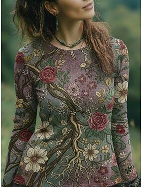 Mulheres Camiseta Imprimir Floral Gráfico Moda à moda Casual Manga Longa Gola Redonda Tops regulares Diário Final de semana Roupas de férias Amarelo Rosa Roxo Verde Verão Primavera Outono