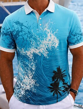 Homens oceano Camisas Polo Havaianas Manga Curta Camisas polo Camisas de colarinho Casual Roupa Esportiva Roupa Diária Roupas de férias Impressão 3D Botões Malha Respirável Verão Primavera Azul Azul