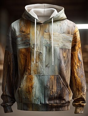Homens Madeira 3D Moletom Étnico Vaqueiro Manga Longa Gola Redonda Streetwear Marron Com Cordão Outono Inverno Designer S M L XL XXL XXXL