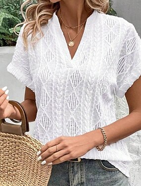 Mulheres Túnica Renda Tecido Elegante à moda Clássico Manga Curta Decote V Tops regulares Diário Branco Verão Primavera Outono Inverno