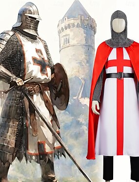 Conjunto Retro Vintage Medieval Renascentista Roupa com acessórios Manga Comprida Cavalheiro Cruzado cavaleiro celta Fantasia Homens Viking Dia Das Bruxas Carnaval Baile de Máscaras Espetáculo feira