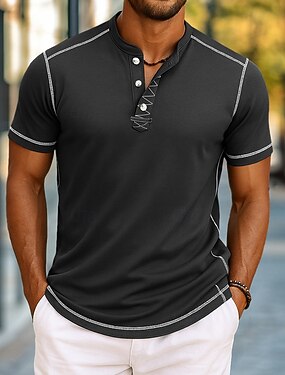 Homens Camiseta Camisa Henley Camisetas Camisa de manga curta Manga Curta Crewneck Henley Verão Primavera & Outono Tecido Moda Designer Básico Puro Férias Rua Casual Preto Azul Marinho Escuro Caqui