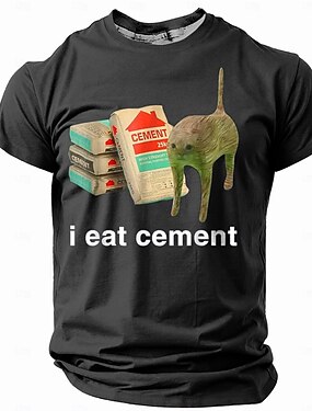Camiseta Gráfica Masculina 'Eu Como Cimento' Meme Engraçado de Manga Curta