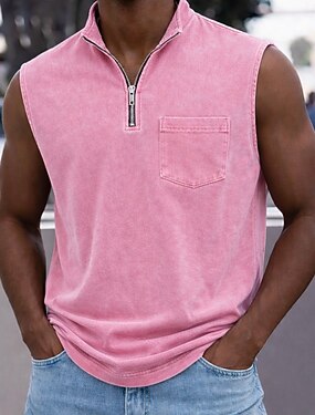 Homens Camisas Polo Camisa 100% algodão com lavagem ácida Casual Feriado Colarinho Clerical Sem Manga Moda Básico Tecido Vintage Puro Verão Primavera Azul Rosa Roxo Camisas Polo