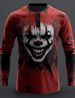 Homens Palhaço Camisa Henley Manga Longa Moda Estilo bonito Diário Casual Feriado Para Noite Outono Inverno Primavera & Outono Vermelho Colar Henley Henley Camiseta Henley