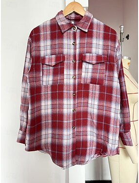 Mulheres Blusa Botões Imprimir Xadrez Vintage à moda Casual Manga Longa Colarinho de Camisa Tops regulares Diário Preto Rosa Vinho Vermelho Primavera Outono
