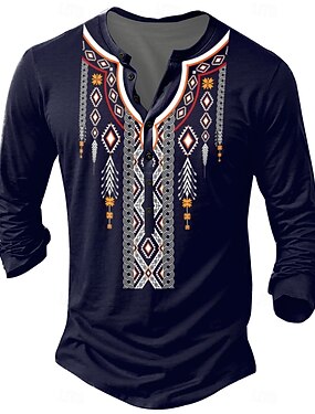 Homens Boho Paisley Damasco Camiseta Manga Longa Impressão 3D Vintage Diário Verão Primavera Outono Azul Colar Henley Camiseta Henley