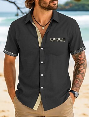 Homens camisa de linho camisa de verão camisa de praia camisa de botão Tecido Férias Havaiana Preto Branco Rosa Azul Manga Curta Lapela Primavera Verão Roupa Básico