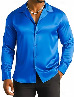 Homens Camisa Social Blusa de cetim Saia Camisa casual camisa de botão Camisa de formatura Tecido Formal Casamento Azul Preto Vinho Verde Manga Longa Colar de acampamento Todas as Estações Roupa