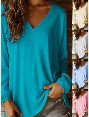Mulheres Blusa Côr Sólida Vintage à moda Casual Manga Longa Decote V Tops regulares Diário Azul Verde Sage Fúcsia Verde Cinzento Primavera Outono