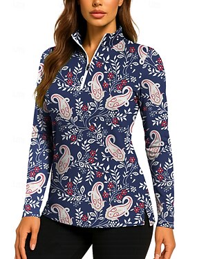 Mulheres Floral Tops Camisa polo de caminhada Camisa de tênis Camiseta de tênis Manga Longa Imprimir Quarter Zip Pullover Proteção UV Elástico Respirável Voleibal Tênis Golfe Colarinho Chinês Gola