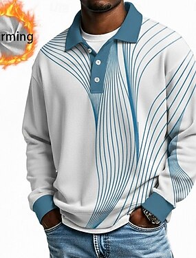 Homens Geométrico Linha Camisas Polo Camisas Themmal Manga Longa Camisas polo Lapela Casual Roupa Esportiva Feriado Roupa Diária Impressão 3D Primavera Outono Inverno Azul Preto Amarelo