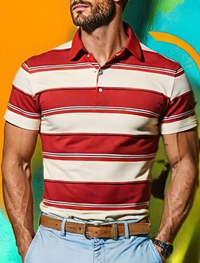 Homens Riscas Camisas Polo de Rugby Manga Curta Camisas polo Lapela Estampa 3D Moderno Confortável Trabalho Casual Esportes Feriado Botões Verão Primavera Vermelho Verde