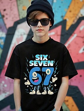 Algodão Infantil Para Meninos Preto Gráfico Gírias engraçadas 67 Camisa Blusa Gola Redonda Manga Curta Ao ar livre Dia a Dia Moda Roupa de rua Designer Estampado Verão