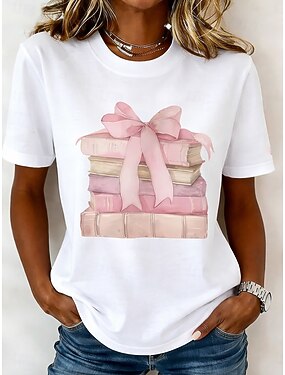 Mulheres Camiseta Imprimir Floral Gráfico Moda à moda Clássico Manga Curta Gola Redonda Decote Redondo Tops regulares Casual Diário Final de semana Azul Branco / Preto Verde com bege Branco Amarelo