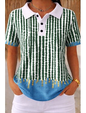 Mulheres Camisa Social Camisas Polo Waffle Tops de verão Gráfico Geométrica Poá Vintage à moda Sem Manga Aberto para a Lateral Colarinho polo Tops longos casamento na praia Casual Diário Branco e