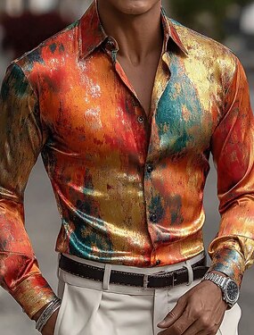 Homens Camisa Social Blusa de cetim Saia Camisa casual camisa de botão Camisa de formatura Tecido Casamento Formal Preto Vinho Azul Marinha Azul Royal Manga Longa Lapela Todas as Estações Roupa