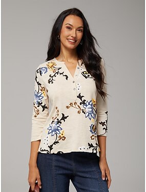 Camiseta de algodão stretch com estampa floral para férias