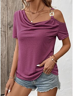 Mulheres Camisa Social Top de ombro a descoberto Blusa Assimétrico Tecido à moda Clássico Moderno Manga Curta Gola Boba Tops regulares Diário Feriado Para Noite Fúcsia Verão Primavera