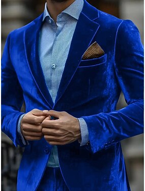 Homens Jaqueta Blazer Festa Bolsos Quente Vintage Inverno Primavera & Outono Veludo Côr Sólida Bolsos Clássico Comum 1 Botão Jaqueta esporte Preto Vermelho Azul Verde