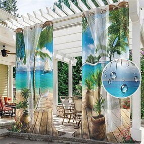 Cortina externa para pátio à prova d'água, decoração de casa, ilhó com isolamento térmico, blackout, cortina/cortina vertical externa interna para gazebo, varanda frontal, pérgula