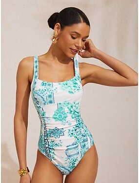 Maiô Feminino 1 Peça Emagrecido Boho Monokini Corte Alto Controle de Barriga Cintura Alta Magro Costas Núas Roupas de Praia Vintage Ombre Gráfico U Neck Sem Mangas
