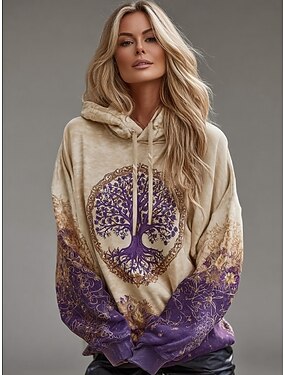 Mulheres Pulôver Moletom Com Capuz Patchwork Imprimir Bolso frontal Gráfico Estampado Cashemere Vintage Casual Boho Manga Longa Com Capuz Tops regulares Rua Dia a Dia Roxo Claro Roxo cáqui Primavera