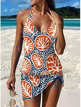 Mulheres Roupa de Banho Tankini Saia roupa de banho Férias Vintage Gráfico Geométrica Halter pescoço Sem Manga Fatos de banho
