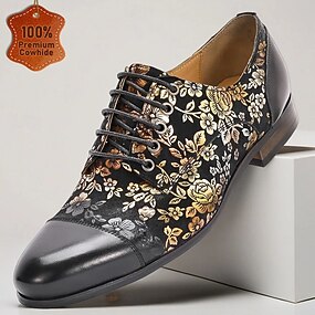 sapatos sociais masculinos de couro preto com cadarço – couro bovino premium com bordado floral e biqueira com tachas de metal para eventos formais e festas