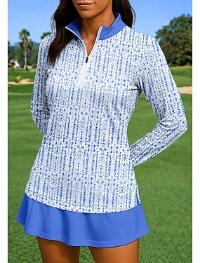 Mulheres Geométrica Gradiente Camisa Esportiva Camisa de tênis Top de tênis Manga Longa Zíper Floral UPF50+ Resistente a UV Elasticidade Alta Pavio Humido Respirável Voleibal Tênis Golfe Colarinho