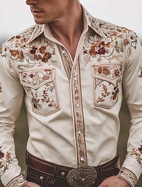Homens Estampa floral Étnico Flores Camisa Social camisa ocidental Camisa de caubói Manga Longa Vintage retrô Casual Ao ar livre Roupa de Trabalho Primavera Outono Aberto para a Lateral Dois bolsos