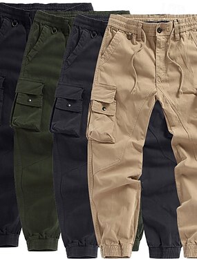 Homens Calças Cargo Corredores Calças Com Cordão Cintura elástica Bolso multi Côr Sólida A Prova de Vento Conforto Diário Ao ar livre Feriado Roupa de rua à moda Preto Verde Tropa Sem Elasticidade