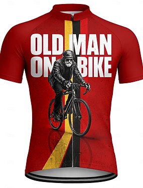 Masculino Camisa para Ciclismo Jersey em declive Nunca subestime um velho com uma bicicleta. Manga Curta Moto Camiseta com 3 bolsos traseiros Resistente a UV Secagem Rápida Com bolsos Zíper Frontal