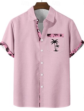Homens Coqueiro Palmeira Plantas Tropicais Camisa Social Camisas havaianas Camiseta Aloha Manga Curta Havaiana Férias Feriado Verão Aberto para a Lateral Impressão 3D Um bolso frontal Camisa tipo
