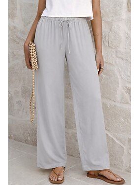 Mulheres Calças Calça casual Calça verão Calças de praia Férias Moda Casual Diário Comprimento total Cintura Alta Côr Sólida Tecido Com Cordão Bolsos Cintura elástica Conforto Secagem Rápida Macio