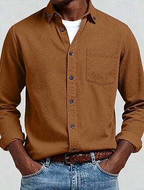 Homens Camisa Social camisa de botão Camiseta de Veludo Camisola Azul Amarelo Vermelho Azul Marinha Verde Manga Longa Tecido Lapela Casual Ao ar livre Bolso frontal Roupa Moda Roupa de rua Casual