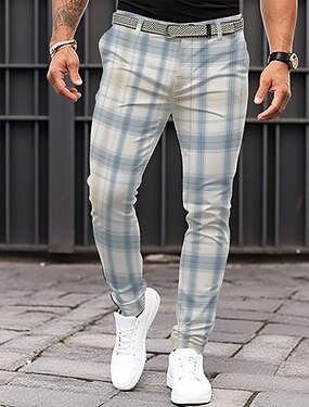 Homens Xadrez Social Cintura Média Business casual Formal Dia a Dia Bolsos Verão Primavera Outono Azul Claro
