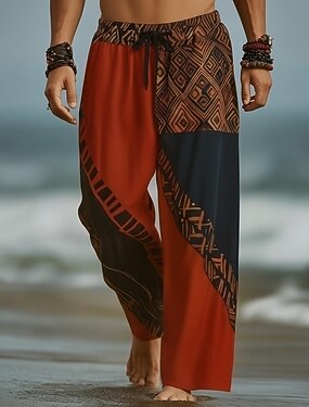 Homens Geométrica Bloco de cor Calças Calças largas Calça casual Cintura Média Moda Casa Ao ar livre Férias Cintura elástica com cordão Calças de linho com bolsos Verão Primavera Impressão 3D Azul