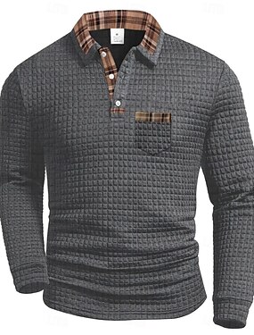 Homens Camisas Polo Waffle Textura O negócio Casual Lapela Clássico Manga Longa Moda Básico Côr Sólida Bolsos Outono Inverno Normal Preto Branco Azul Marinha Verde Tropa Cinzento Camisas Polo Waffle