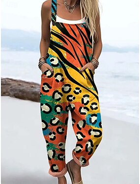 Mulheres No geral Ativo Gráfico Sem Manga Sem Mangas Reto Decote Quadrado Bolsos Imprimir Diário Praia Ajuste Largo Azul Amarelo Laranja Verão