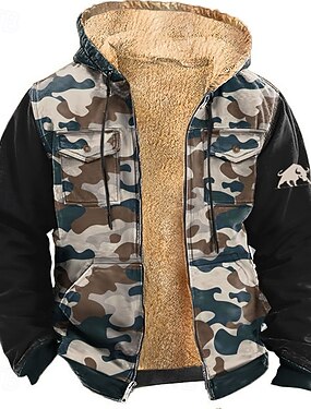 Homens camuflagem Côr Camuflagem Tosão Moletom Jaqueta Moda Legal Diário Vintage retrô Com Capuz Ao ar livre Presente Caça Azul Preto Marron Verde Zíper Bolsos Outono Inverno Designer S M L XL XXL