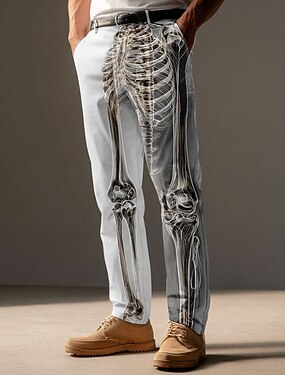 Calças Masculinas de Fantasia de Caveira e Esqueleto Calças de Vestir Calças de Terno Cintura Média Estilo Gótico Punk Escuro Externo Férias Calças Slim Fit com Bolsos Primavera Outono Impressão 3D